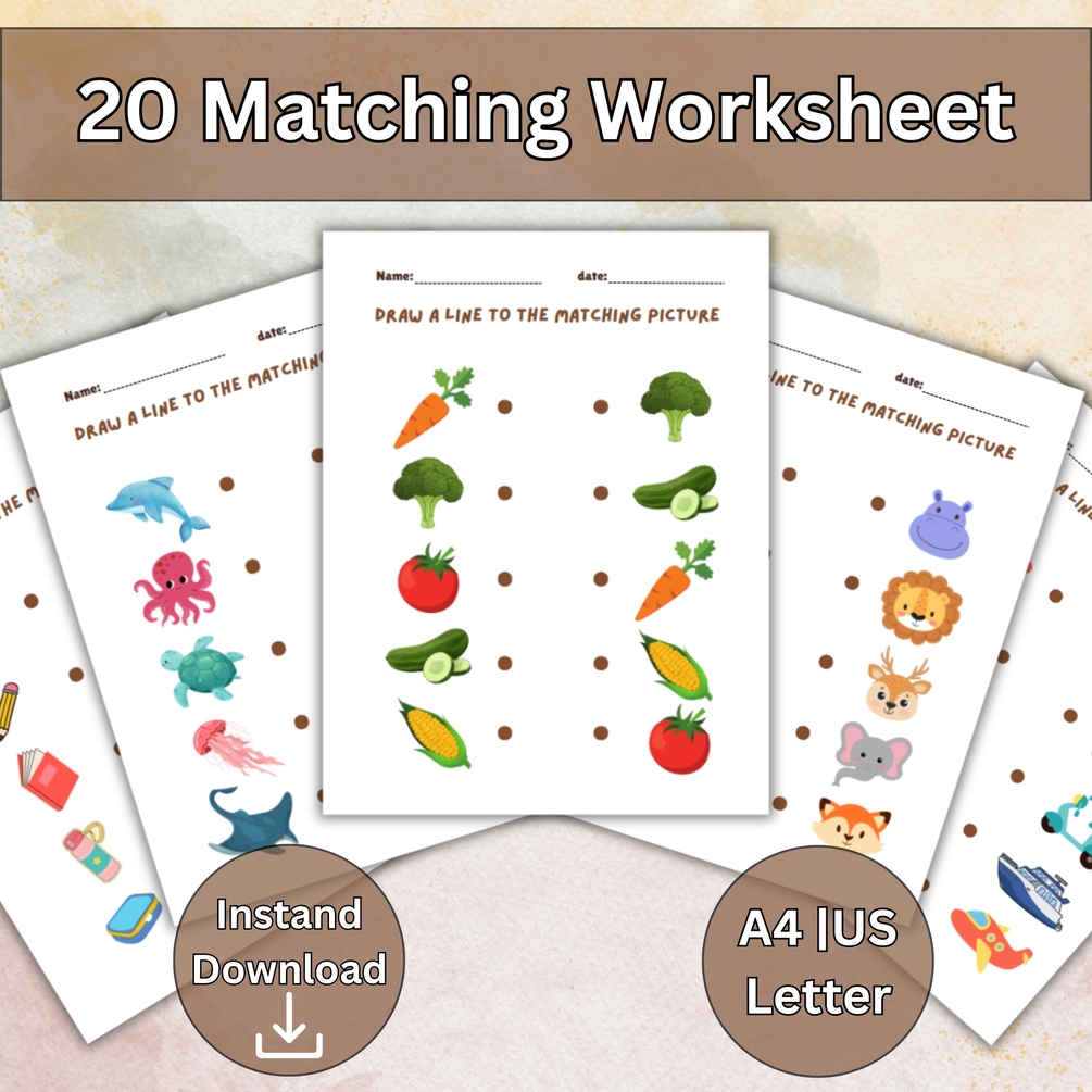 Fun Picture Matching Worksheet for Preschoolers – A4 & US Letter Sizes